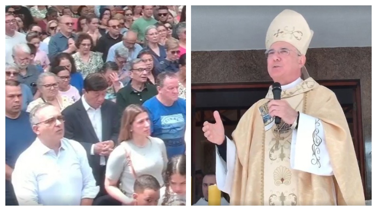 Em determinado momento da missa, Dom Pedro Carlos Cippolini afirmou que “a corrupção é um dragão que devora as pessoas” e criticou a mentalidade de querer levar vantagem em tudo. Um vídeo enviado ao g1 mostra o momento em que as pessoas aplaudem a fala, entre elas Marcelo Lima.